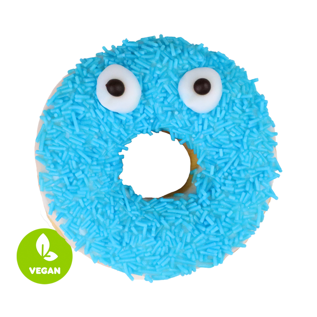 ungefüllt, überzogen mit weißer Zuckerglasur und bunten Zuckerstreuseln (vegan)
